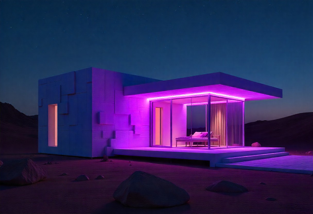 Владельцы домов получают возможность экспериментировать с освещением без необходимости в капитальном ремонте. Представьте: днем фасад выглядит строгим и минималистичным, а вечером – трансформируется в динамичный арт-объект. Это открывает двери для персонализации – от мягкого белого света для уютной атмосферы до цветных акцентов для вечеринок. Кроме того, интеграция LED повышает энергоэффективность, снижая затраты на электричество по сравнению с традиционными прожекторами.